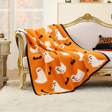 - Spooktacular Halloween Design: Our adorable pattern features friendly white ghosts and playful black bats dancing across a warm orange background. The raised knit technique gives each ghost charming dimension while the bats add just the right amount of spooky flair.