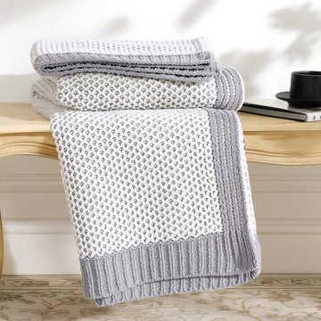 Two-Tone Honeycomb Chenille Knit Throw Blanket
