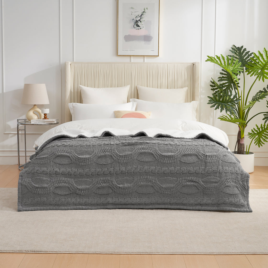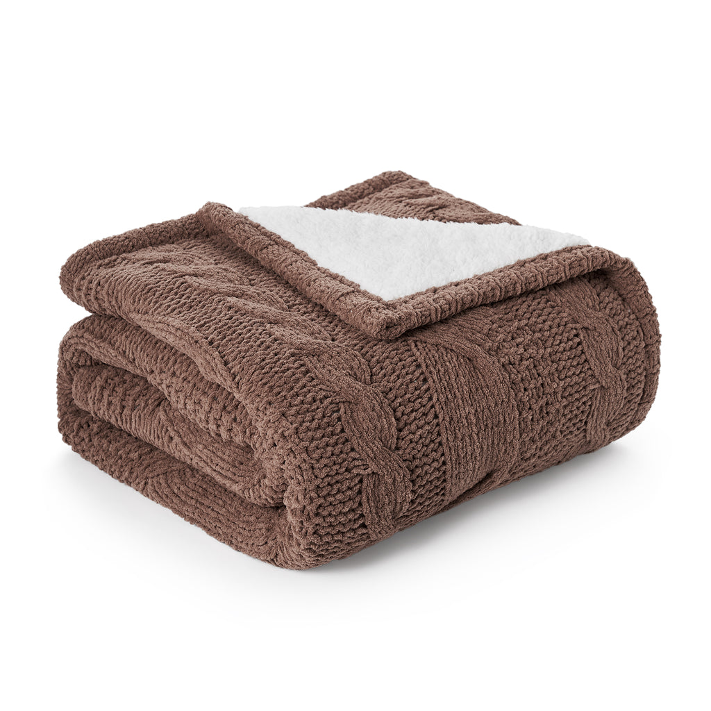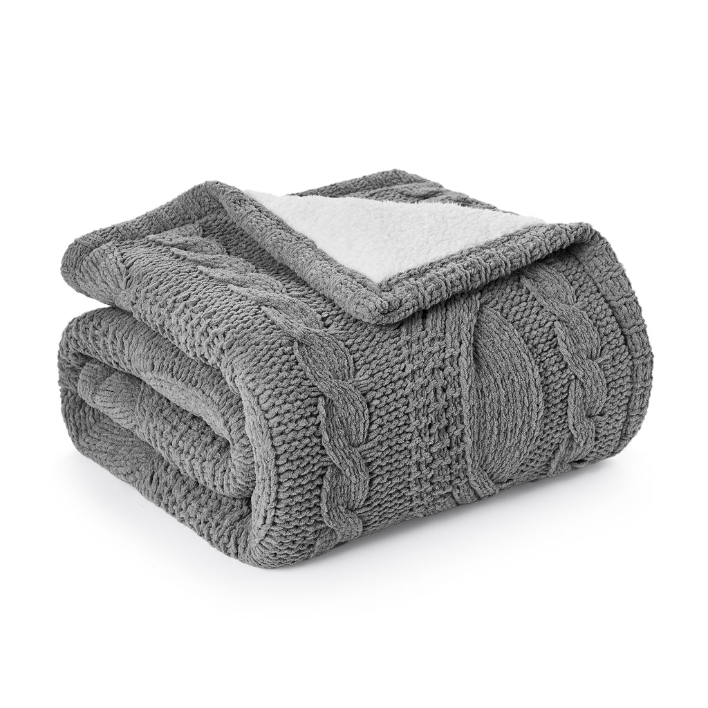 - CABLE SHERPA ELEGANT DESIGN: Discover winter elegance with the Classic Cable Knitted Chenille Throw Blanket for couch from Amélie Home. The classic cable design on the front creates a timeless look, while the luxurious chenille fabric and cozy sherpa reverse offer exceptional warmth and comfort, perfect for chilly evenings or relaxing by the fire.