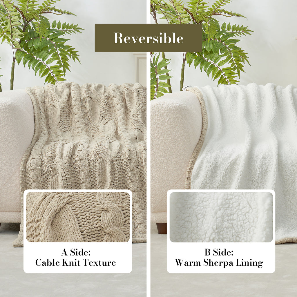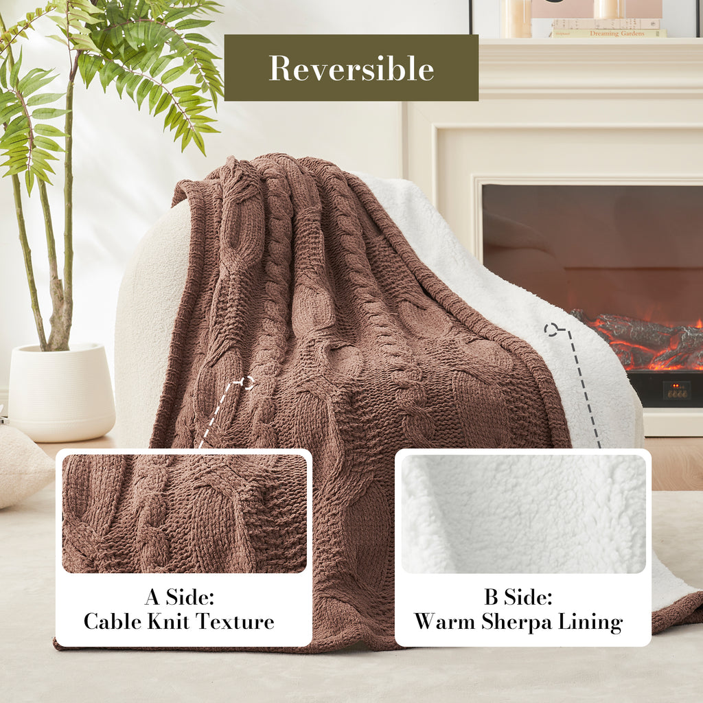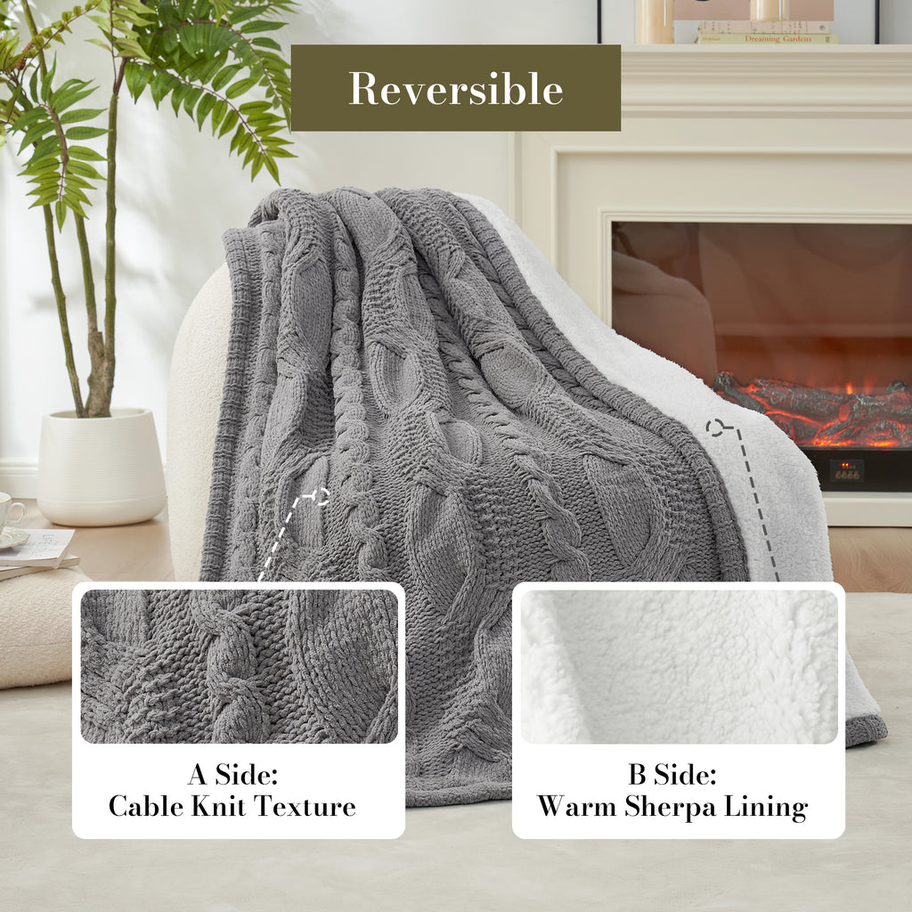 Reversible Cable Chenille Sherpa Knit Throw Blanket