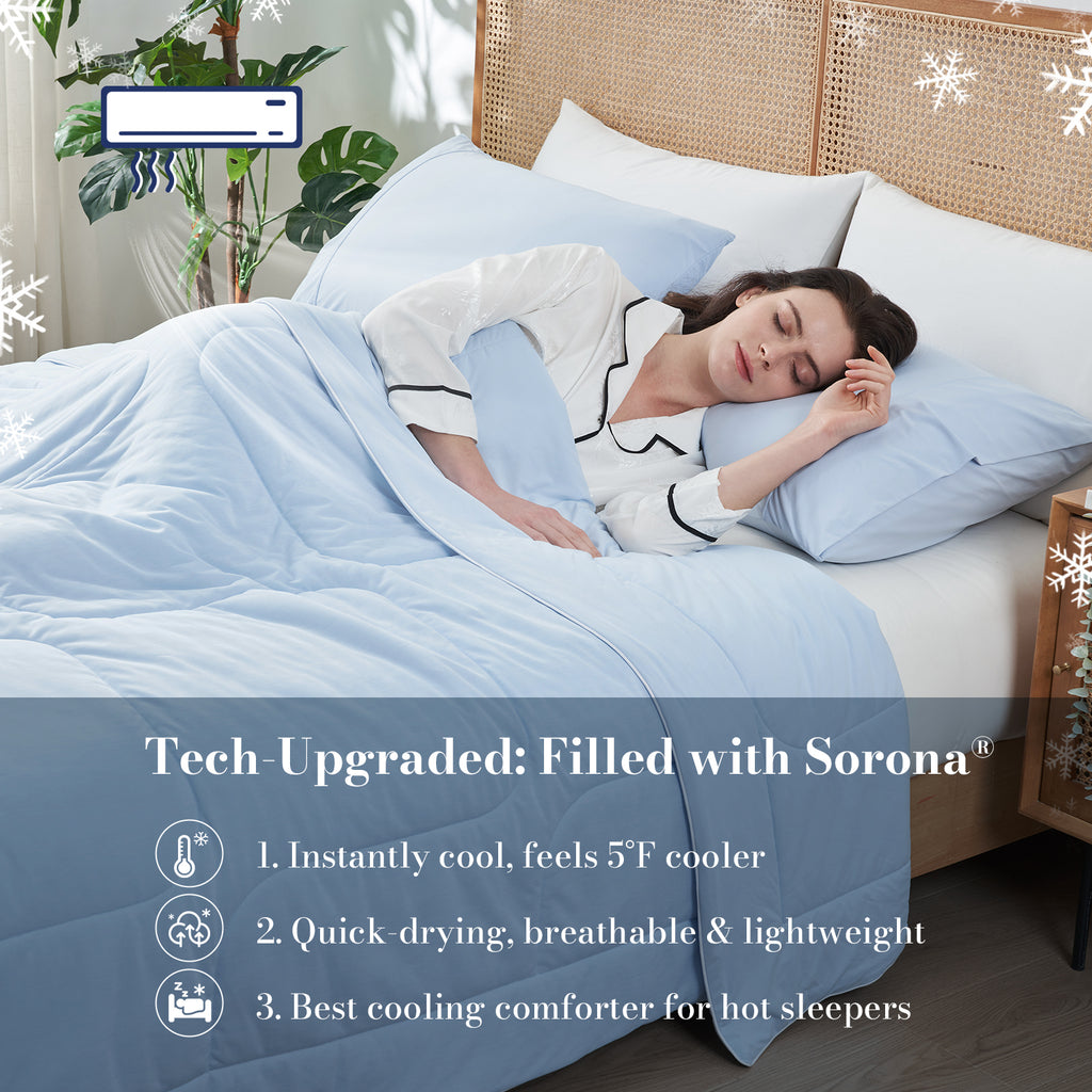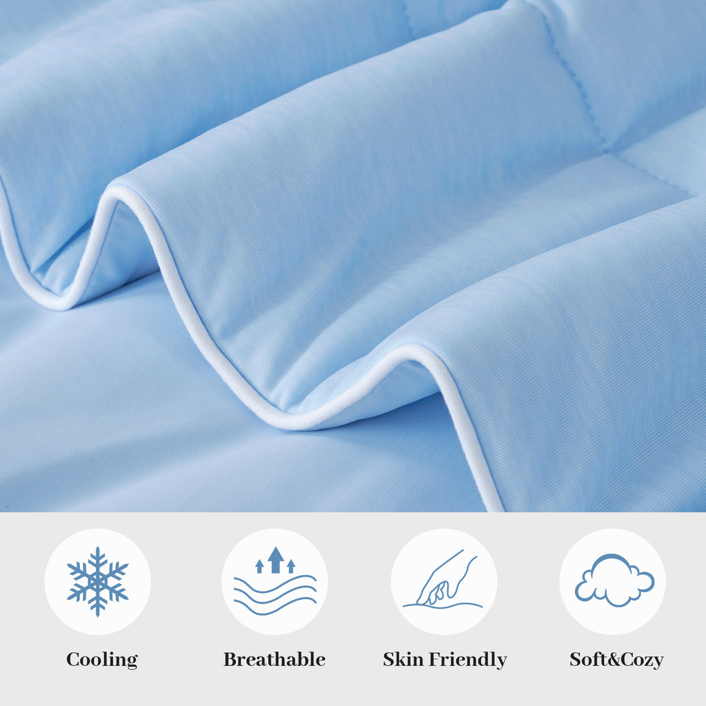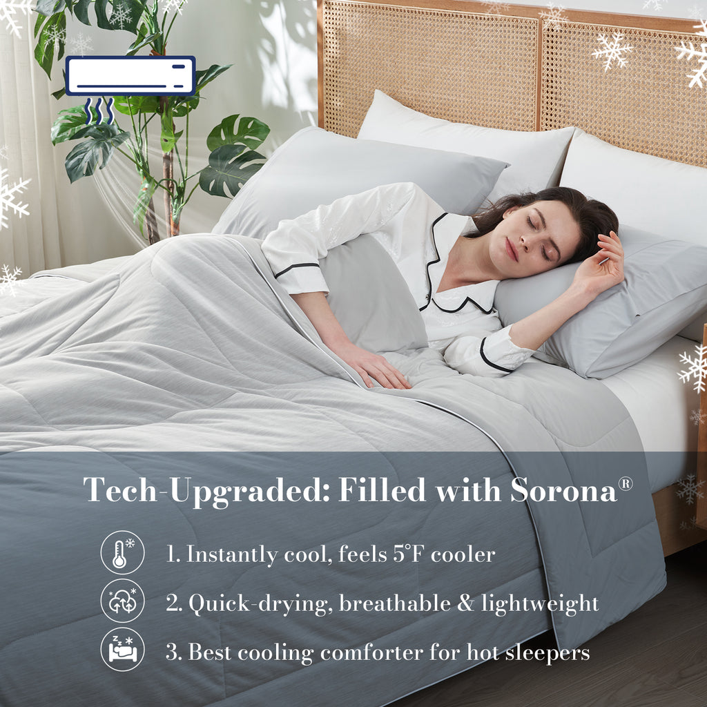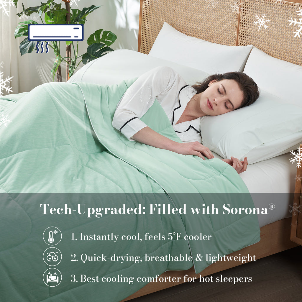 - Lightweight, Breathable & Moisture-Wicking: Filled with eco-friendly Sorona fibers, this cooling blanket provides exceptional breathability and moisture absorption, keeping you dry and sweat-free all night. The OEKO-TEX-certified, ultra-soft fabric is gentle on sensitive skin, offering cloud-like comfort.