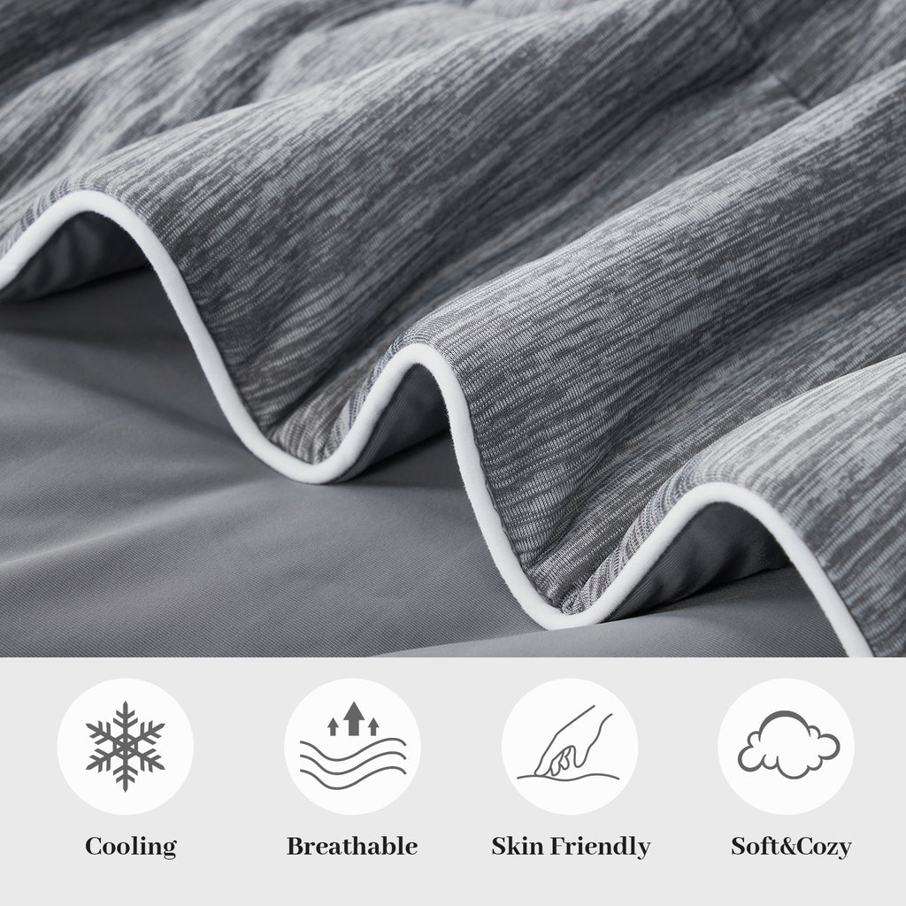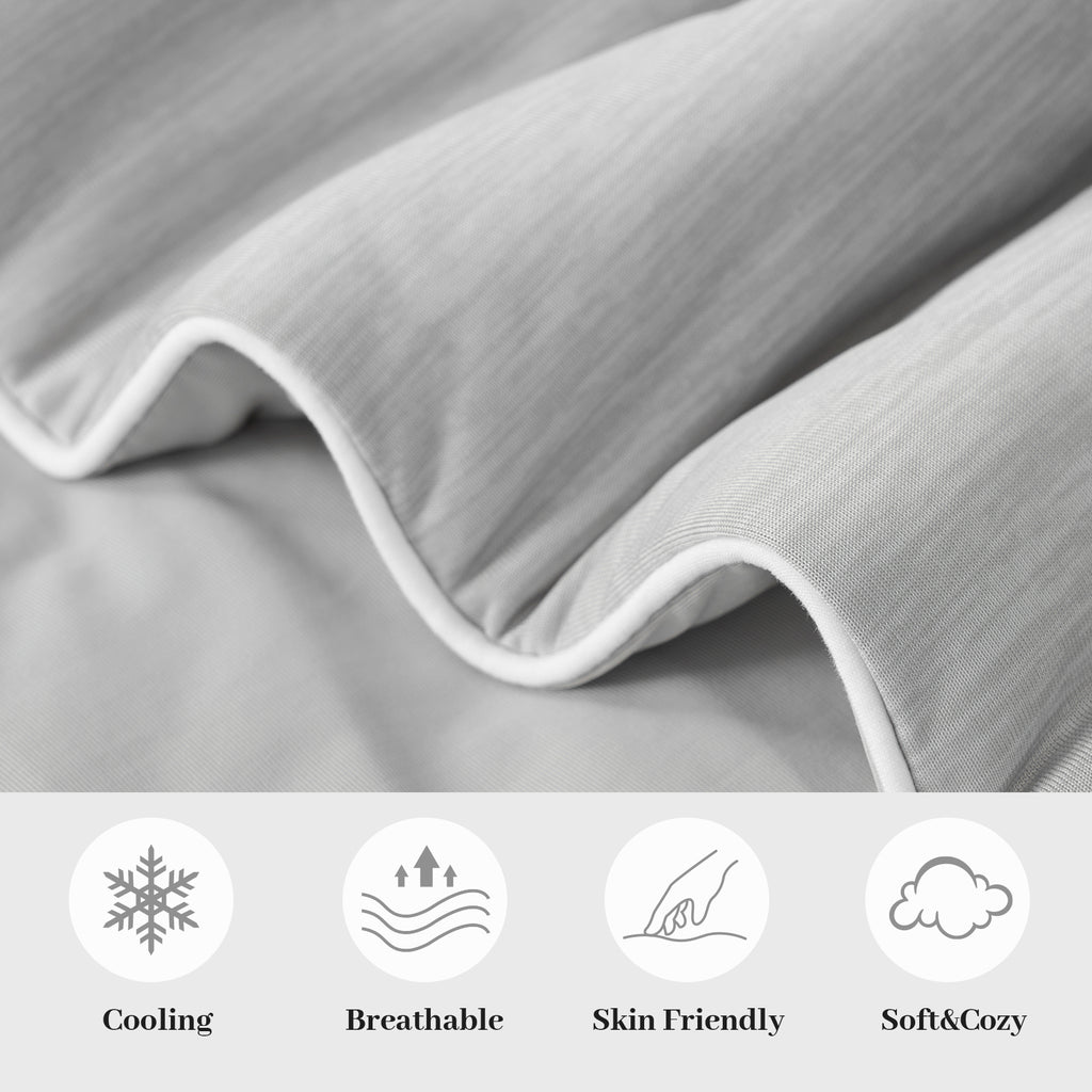 - Dual-Sided Cooling Design: Featuring ultra-cool fabric (Q-Max > 0.43) on one side that absorbs body heat and lowers skin temperature by 2-5°C, this blanket is perfect for hot sleepers and those with night sweats. The textured front side offers a milder cooling effect for everyday use, ideal for all seasons.