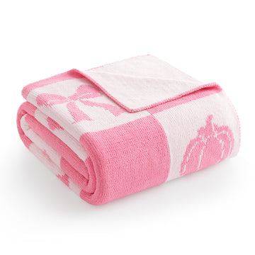 Halloween Pink Pumpkin Bow Chenille Throw Blanket