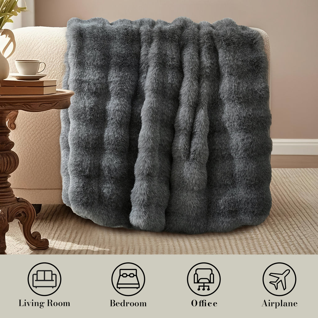 - Luxurious Bubble Texture Design: Our faux fur throw blanket combines stylish texture with plush comfort, featuring a refined dimensional wave pattern. This throw blanket elevates any space, from bedrooms to living areas or your favorite couch, with its sophisticated high-low design, luxurious aesthetic, and premium tactile appeal.
