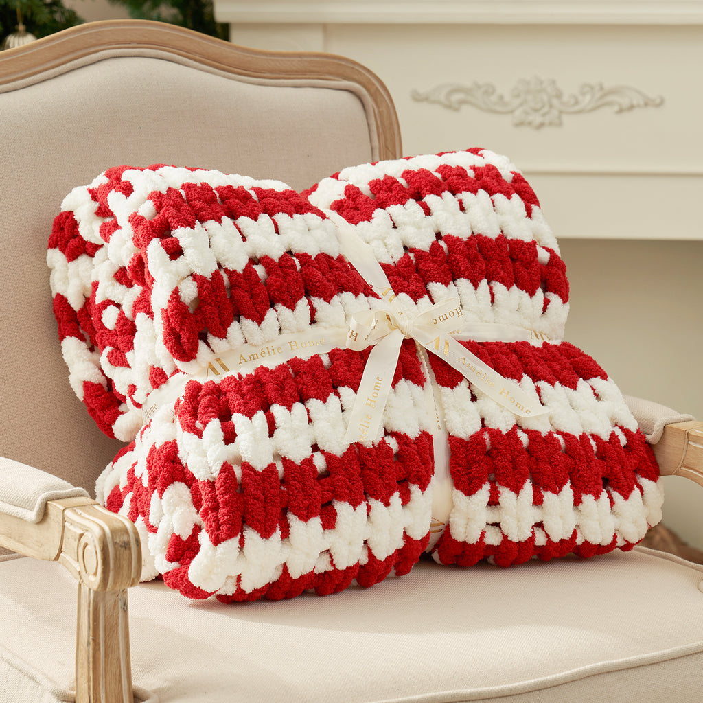 - CHUNKY HAND-KINT TEXTURE: This chenille throw blanket mimics the look of handmade chunky knit blankets with its oversized rope-like yarns . Each deep stitch creates a tactile, lofted texture that elevates sofas, beds, or nursery chairs instantly.